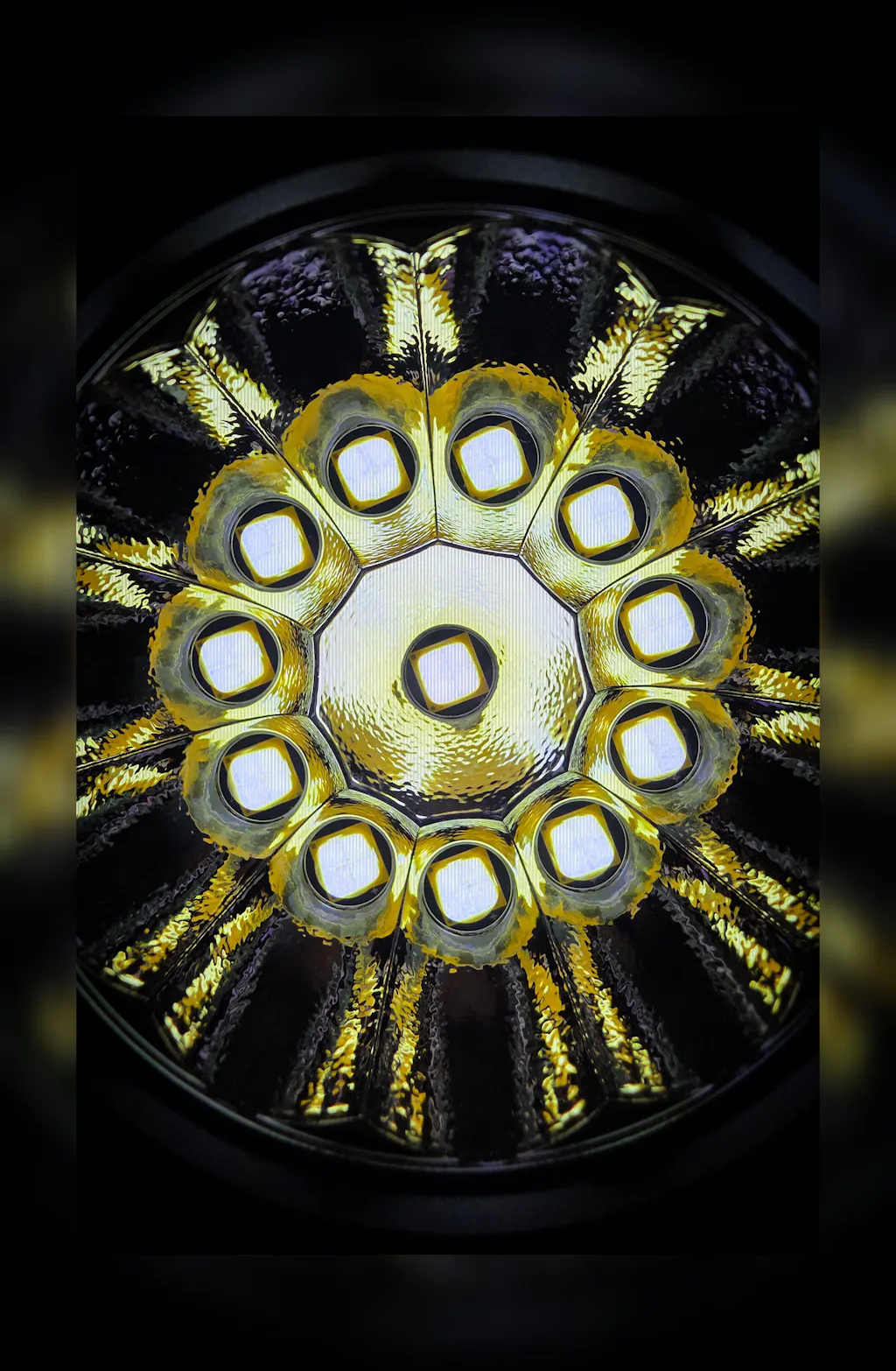 Erhellen Sie den Nachthimmel mit der Kraft von 12 strategisch angeordneten CREE XHP70.2 LEDs, die für eine robuste Beleuchtung sorgen. Das kompakte Design, gepaart mit einem optimierten Reflektordurchmesser, garantiert, dass die Nacht mit Brillanz erstrahlt.