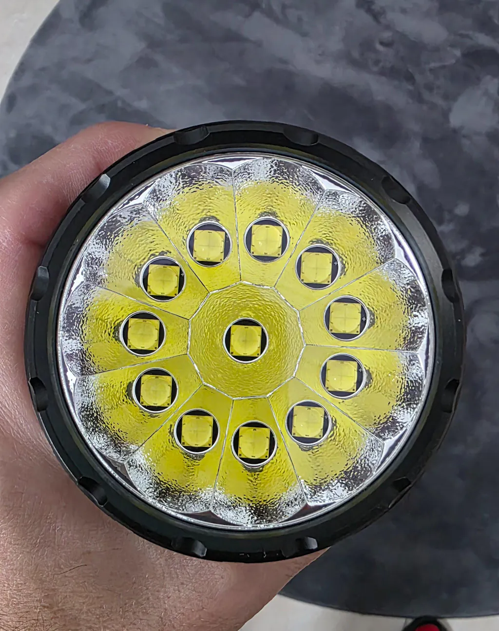 Die IMALENT MS12 LED Taschenlampe, mit einer Lichtleistung von bis zu 65.000 Lumen, ist die erste kompakte Taschenlampe, die sich durch die Ausleuchtung großer Bereiche auszeichnet. Die IMALENT MS12 LED-Taschenlampe sichert sich den vierten Platz auf der weltweiten Rangliste der leistungsstärksten Taschenlampen. Ausgestattet mit 12 Einheiten der in den USA hergestellten CREE XHP 70.2-LEDs liefert diese Taschenlampe eine beeindruckende Leistung von 65.000 Lumen und deckt mit ihrem Strahl eine Entfernung von 1036 Metern ab. Die CREE XHP70.2 LED, die für ihre Fähigkeiten im Bereich der Flutlichtbeleuchtung mit hohen Lumen bekannt ist, bietet einen breiten Abstrahlwinkel und eine Reihe umfangreicher Funktionen, was sie zur optimalen Wahl für professionelle Anwendungen wie Such- und Rettungseinsätze macht. Gleichzeitig dient sie als hervorragende LED-Taschenlampe, die den Spaß an Outdoor-Aktivitäten wie Camping, Höhlenforschung und mehr erhöht.